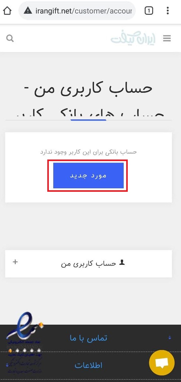 در این قسمت با انتخاب گزینه "مورد جدید" اطلاعات مورد نیاز کارت بانکی که با آن قصد خرید از سایت ایران گیفت را دارید و به نام خودتان هست به صورت کامل وارد نمایید