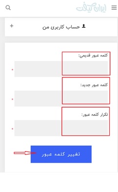 جهت تغییر رمز عبور خود وارد حساب کاربری خود شوید وگزینه "حساب کاربری من" را در قسمت سه خط بالا انتخاب نمایید.