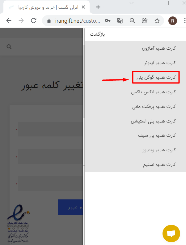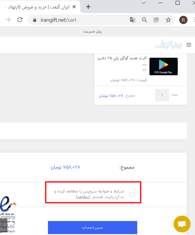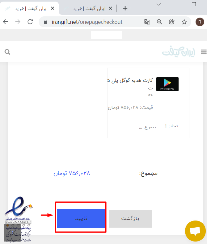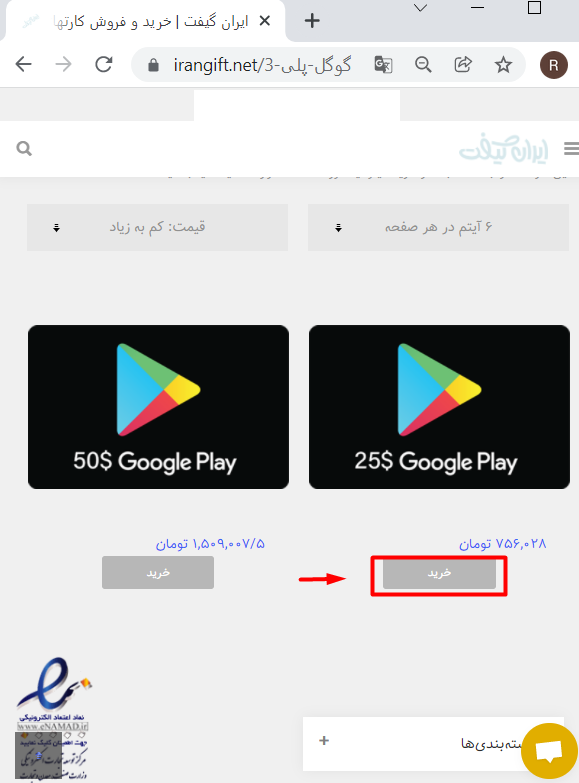 بعد از انتخاب گیفت کارت مورد نظر، گزینه ی "خرید" را انتخاب نمایید.