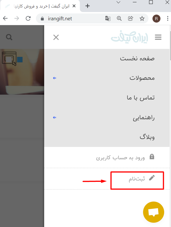 برای ثبت نام در سایت ابتدا مطابق تصویر بر روی سه خط بالا سمت راست صفحه همانطور که در تصویر نشان داده شده کلیک نمایید.