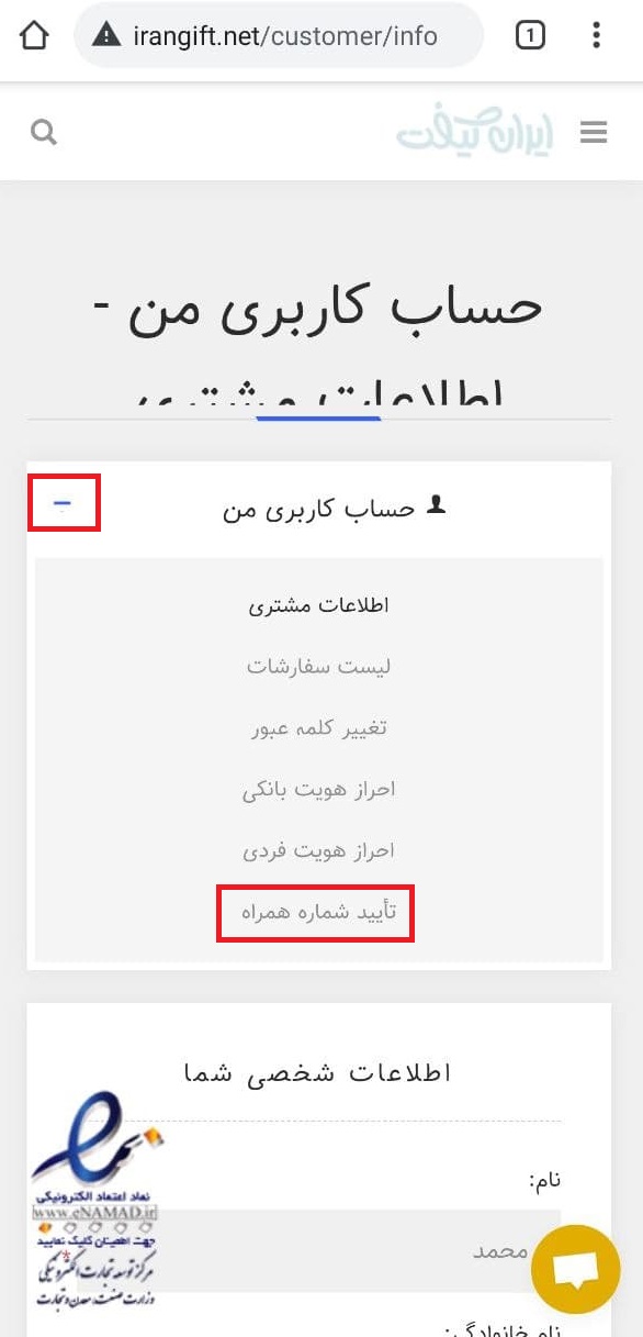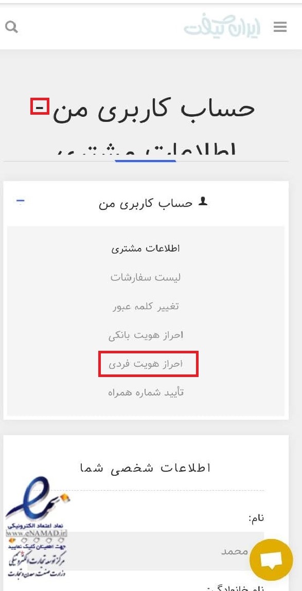 برای اینکار در حساب کاربری من روی + کلیک کرده و بعد گزینه احراز هویت فردی را انتخاب می کنید