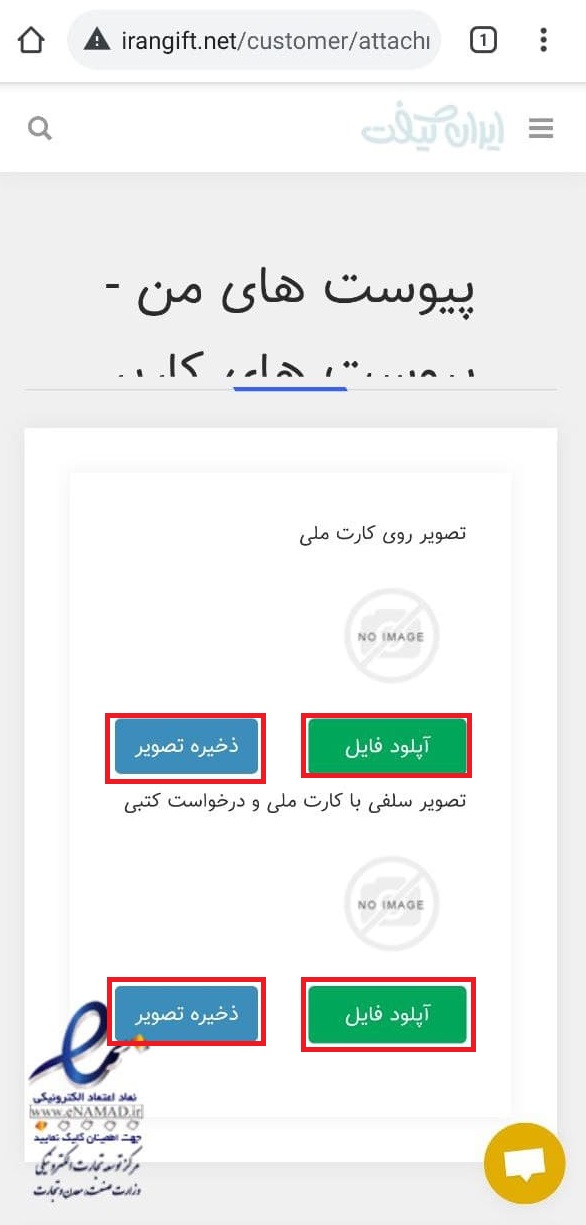 طبق تصویر زیر مدارک لازم را بارگذاری و ذخیره را انتخاب نمایید.